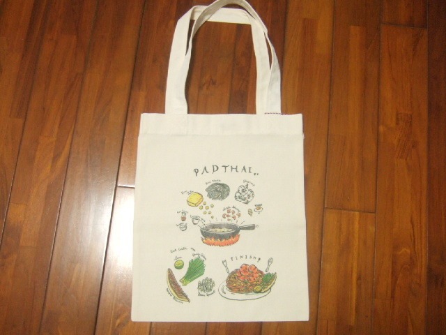 【タイ製】エコバッグ 布製 パッタイのレシピ柄 39x32cm マチ無し【レターパック可】