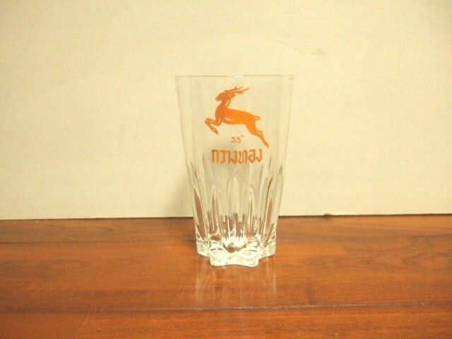 タイからの仕入れ品です。 ただのグラスなんですが、 面白いのはその柄にあります。 柄は、タイ文字でกวางทอง(クワーングトーン) と書いてあります。 聞くところによると、タイのお酒だそうで、 よく見ると上に35℃という文字も見えます。 だいぶ強めのお酒ということで。 お酒とは知らず、 この鹿の柄に惹かれての仕入れです。 鹿柄はタイでは珍しいのかもしれませんね。 大きさ 高さ12cm 上部の径7.5cm 下部は5cm幅 重さ約240g お使いのモニターにより、 色の見え方が異なる場合もございます。 ご了承の上、ご注文お願いします。 当店では、お客様都合による返品は致しかねます。 ★注意事項 こちらの商品は、タイの現地では調理のための道具や食器として使用されてますが、 日本では食器として販売するための検査を通しておりません。 従いまして、雑貨・装飾品としての販売となります。予めご了承をお願い致します。