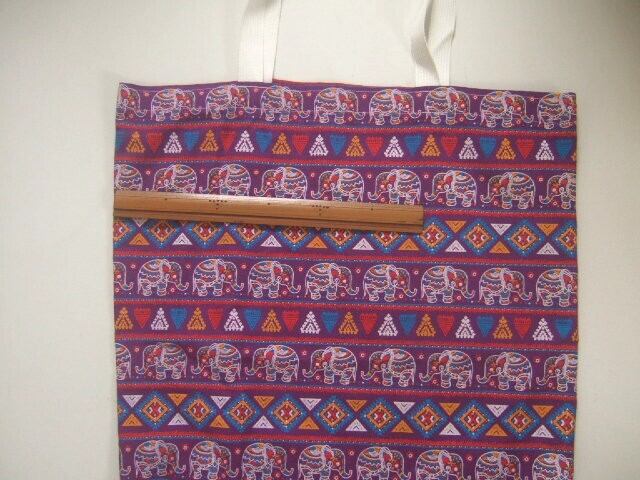 【タイ製】エコバッグ 布製 象さん柄 タイパンツ柄 紫ベース【レターパック可】