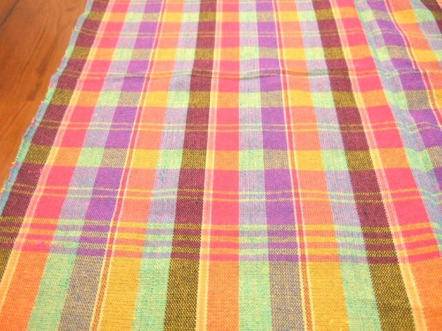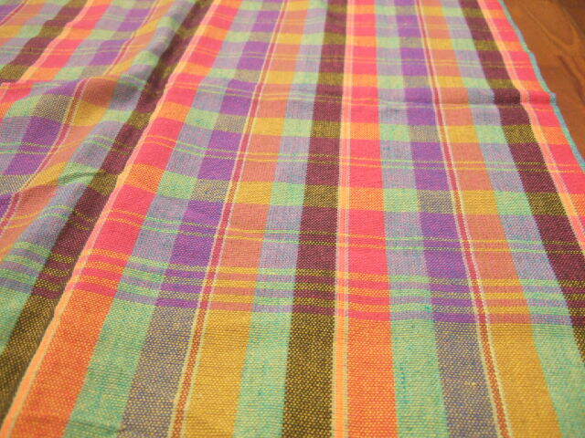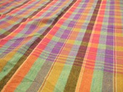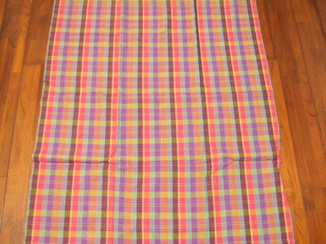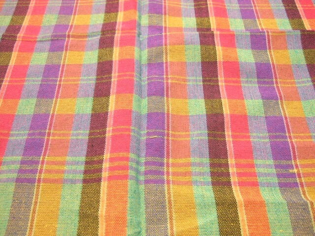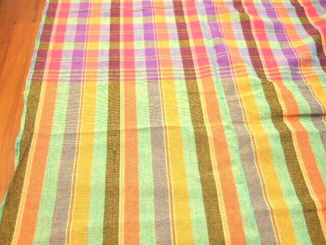 【タイ製】パーカオマー タイの布 エンジ&緑&紫&茶色&黄土色など ランダムチェック柄 188x78cm【レターパック可】