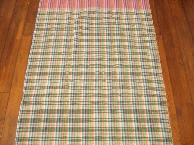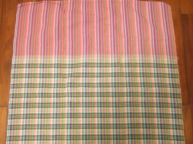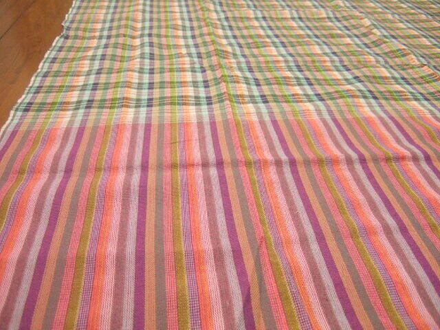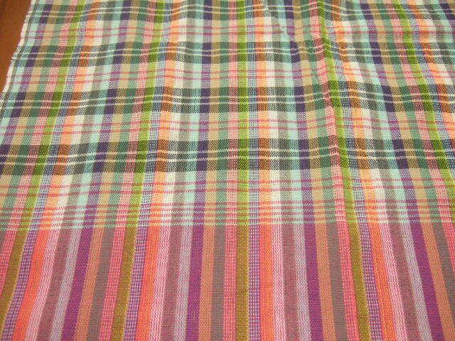 【タイ製】パーカオマー タイの布 オレンジ&白&グレー&水色&黄色&緑&ピンクなど 細かいランダムチェック柄 185x78cm【レターパック可】