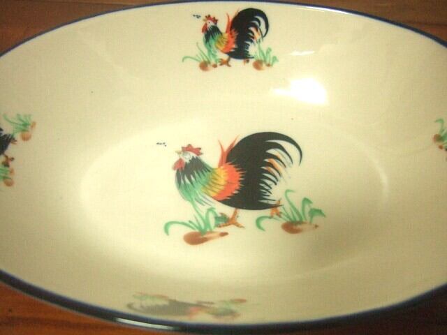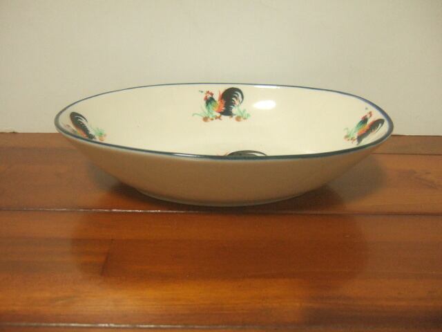 【タイ製】楕円の深皿 22cm幅 縁取り青 鳥さん柄 ランパーンの陶器