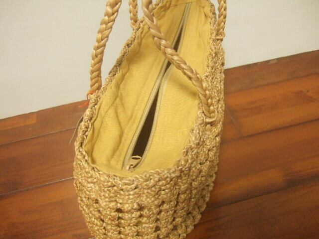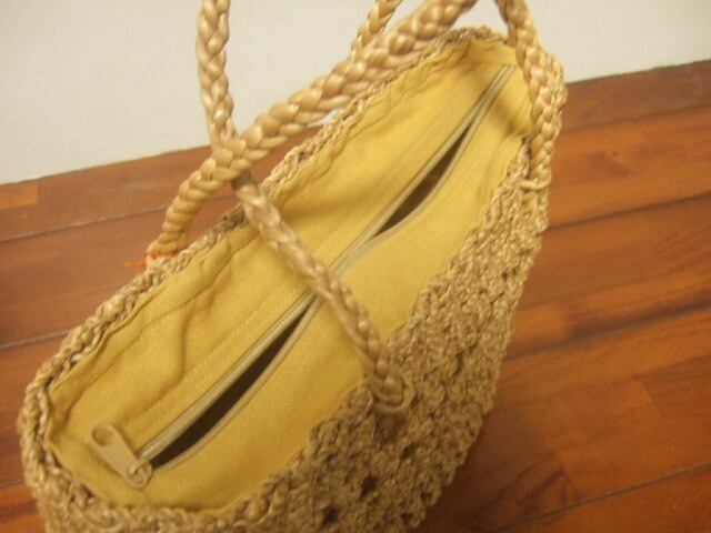 【タイ製】ウォーターヒヤシンス 粗目の花結び編みの直方体かご 底は楕円 下部幅25cm ファスナー付【送料別設定】