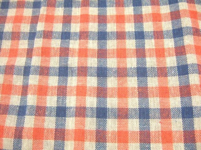 色合いは、オレンジ 青 白などが合わさったかなり小さめのチェック柄となります。