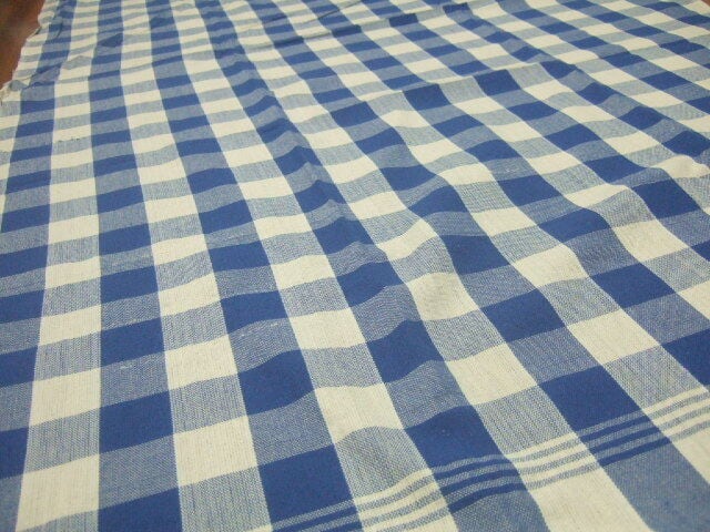 【タイ製】パーカオマー タイの布 白 青 シンプル大きめチェック柄 188x78cm【レターパック可】