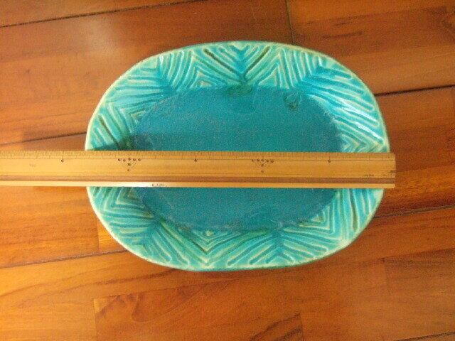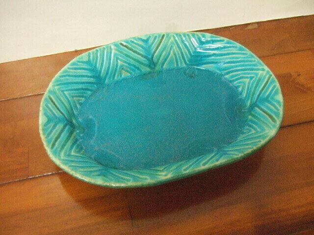 沖縄産 工房sen やちむん リムプレート トルコ色 綺麗なお皿 23.5cm幅 510g