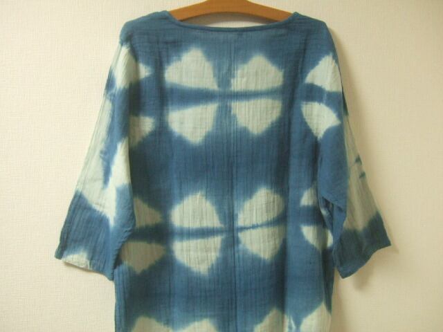 【タイ製】藍染 丸くび 長袖シャツ ブルーの地に半円柄 サールー生地【レターパック可】
