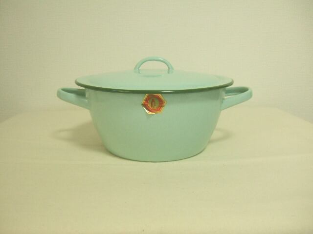 【タイ製】ホーロー両手鍋ふた付き20cmPENGUIN ミントグリーン 軽くて使いやすいお鍋