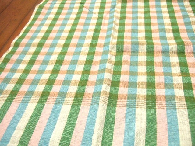 色合いは、ピンク&緑&水色などが合わさった小さめのチェック柄となります。
