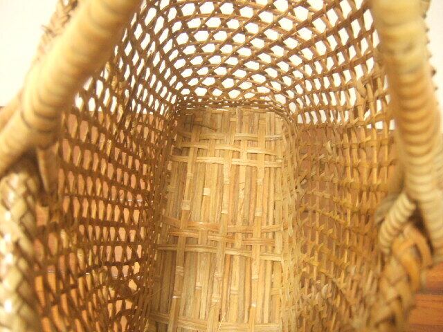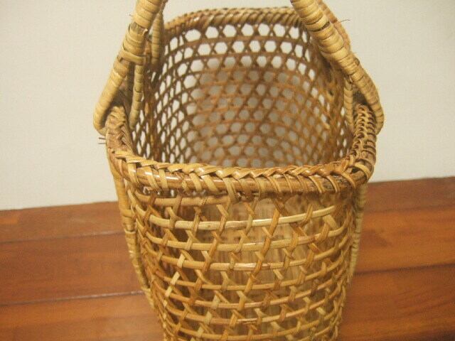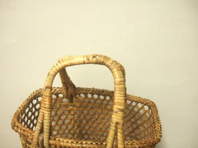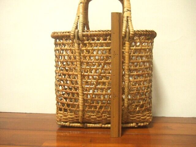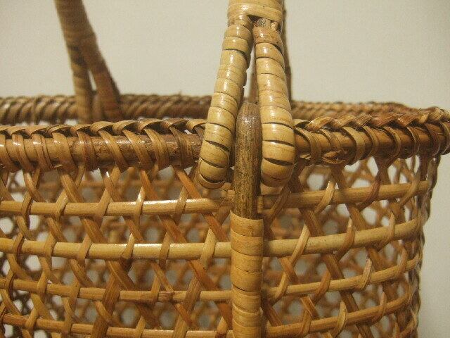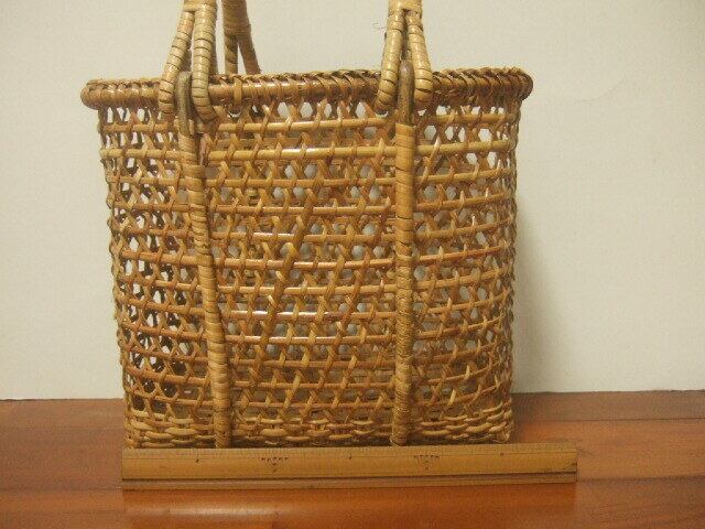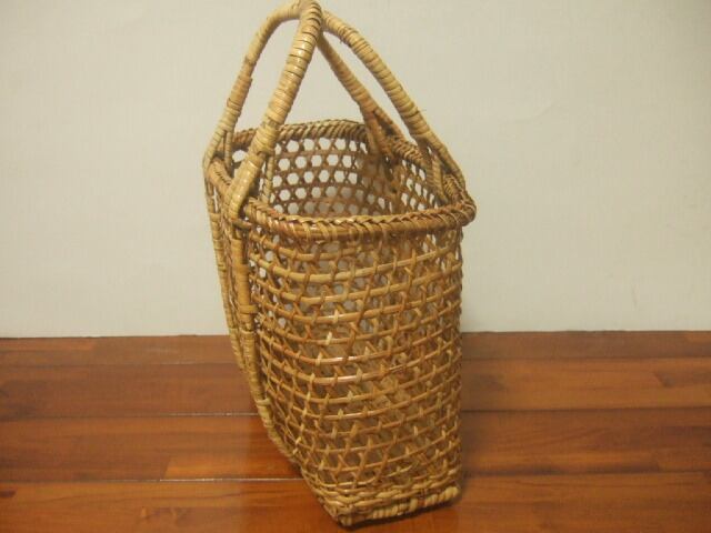 【タイ製】六つ目ナチュラルかごバッグ 籐(ラタン)で編まれた粗い網目(すかし編みタイプ) 中サイズ 幅28.5cm【送料別設定】